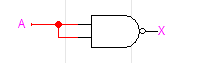 NOT 게이트의 구현은 NAND와 완전히 같습니다. 그 이유는 입력이 00일 때와 11일 때, NAND와 NOR의 진리표 상 값이 같기 때문입니다. 결국 A+A=A이므로 최종적으로 NOT 게이트가 되는 것입니다. 덕분에 아주 쉽게 첫 번째 내용을 구현하였습니다.