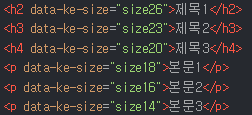 사실 HTML 코드를 보면 그 차이를 이해할 수 있는데, 본문은 <p> 태그로 되어 있지만, 제목은 <h2>, <h3>, <h4> 태그로 되어 있습니다.