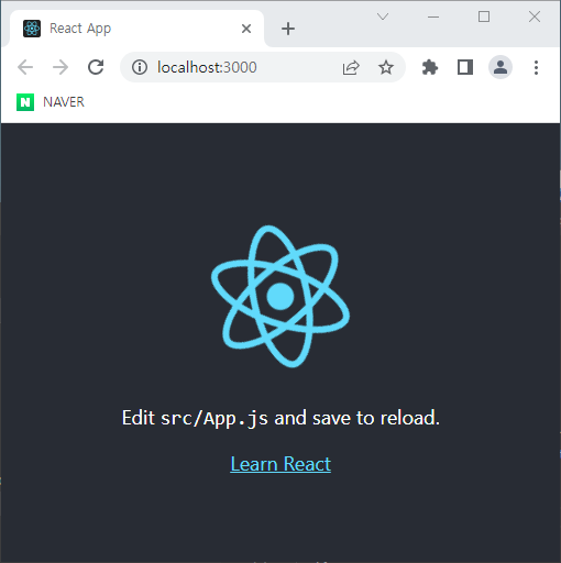 리액트는 개발할 때 이용할 수 있게 자동으로 프론트 쪽 서버를 제공해주는데요, 아래와 같이 localhost:3000에서 확인이 가능합니다.