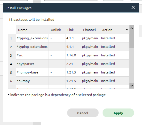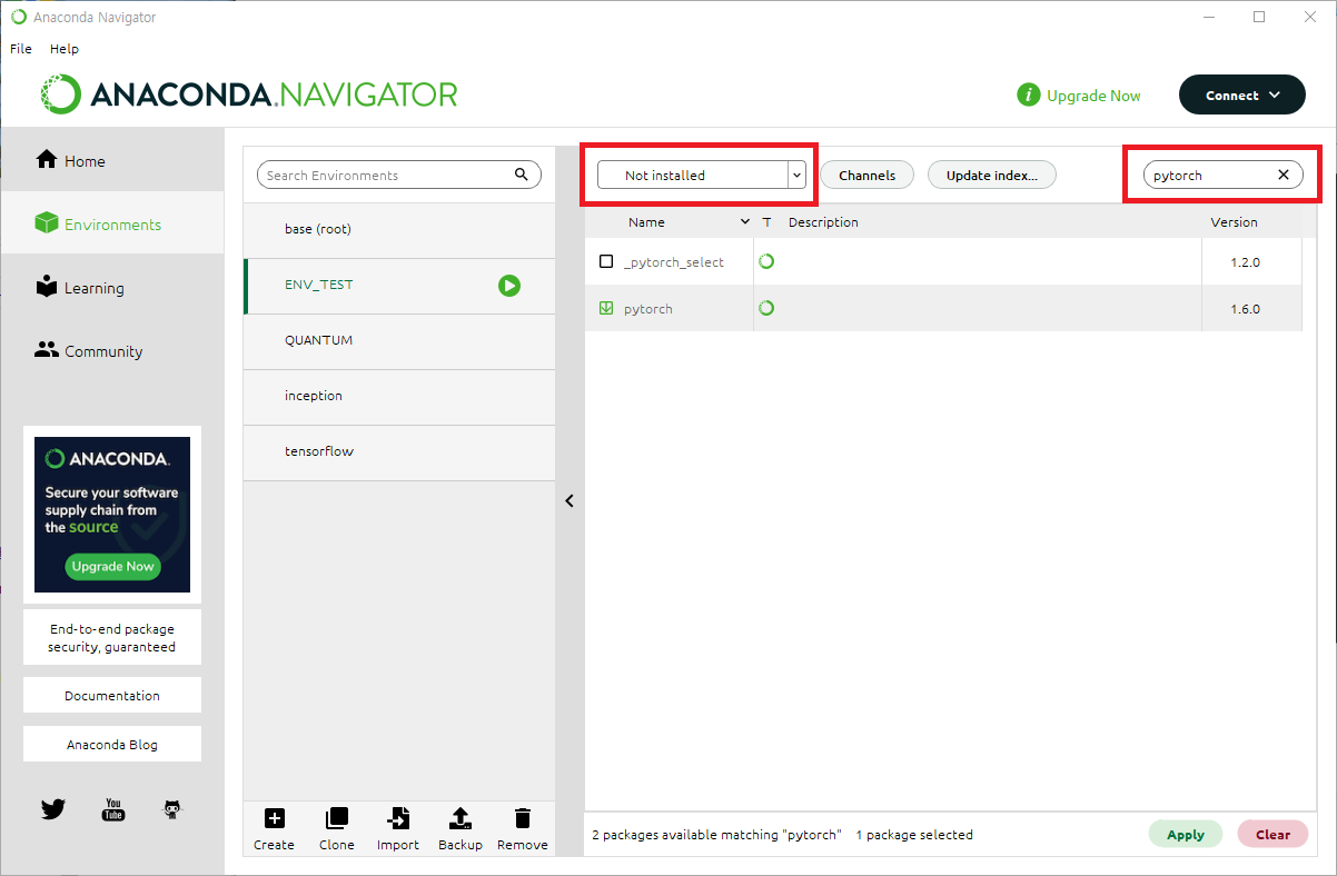 저는 pytorch를 검색하여 설치해보았는데요, 다음과 같이 해당 패키지를 설치하기 위해 필요한 것들이 쭉 출력됩니다. Apply하여 진행해주면 잘 설치됩니다.