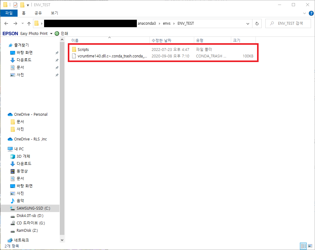 다만 실제 해당 위치에 가보면 가상환경 폴더와 자잘한 쓰레기 파일 등이 남아 있기 때문에, 완전히 삭제하고 싶으면 해당 내용까지 지워주시면 됩니다.