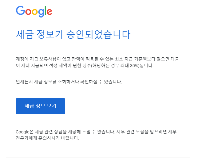 그러자 불과 몇 시간도 채 지나지 않아 바로 세금 정보가 승인되었다는 메일을 받을 수 있었습니다.