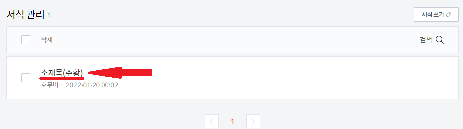 서식을 수정하려면 서식 관리에서 서식 제목을 클릭하면 됩니다.