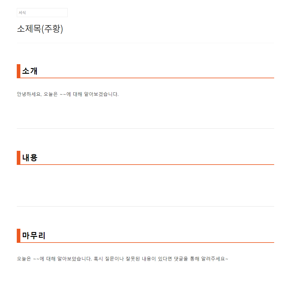 오늘은 티스토리 서식을 이용하는 방법에 대해 알아보겠습니다.