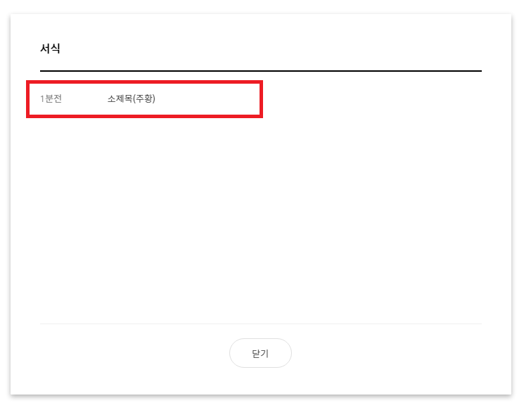 이를 클릭하면 오른쪽과 같이 아까 작성한 서식을 확인할 수 있습니다. 이를 다시 클릭해주면 현재 커서 위치에 서식이 추가됩니다.