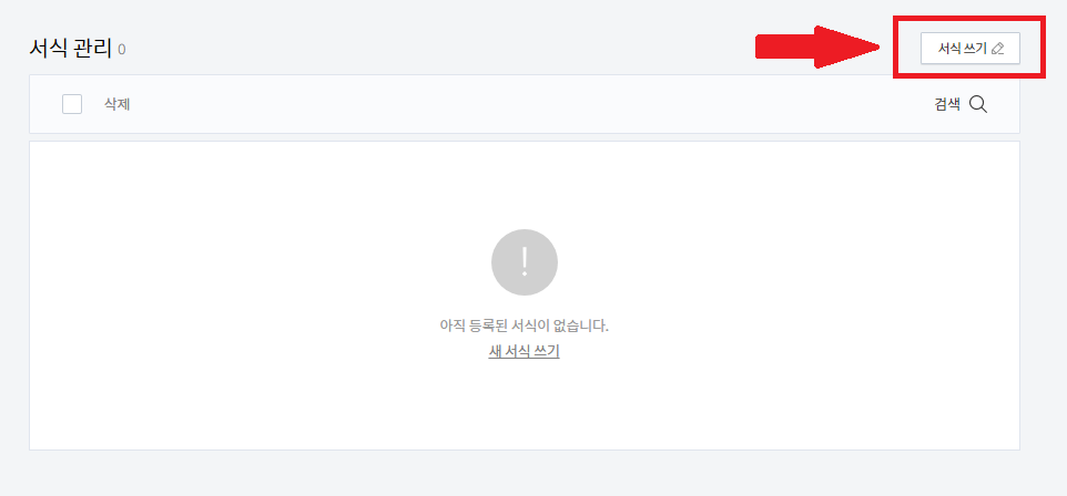 글쓰기 에디터와는 다르게 카테고리가 서식으로 고정되어 있으며 태그 입력 부분이 없는 것을 확인할 수 있습니다.